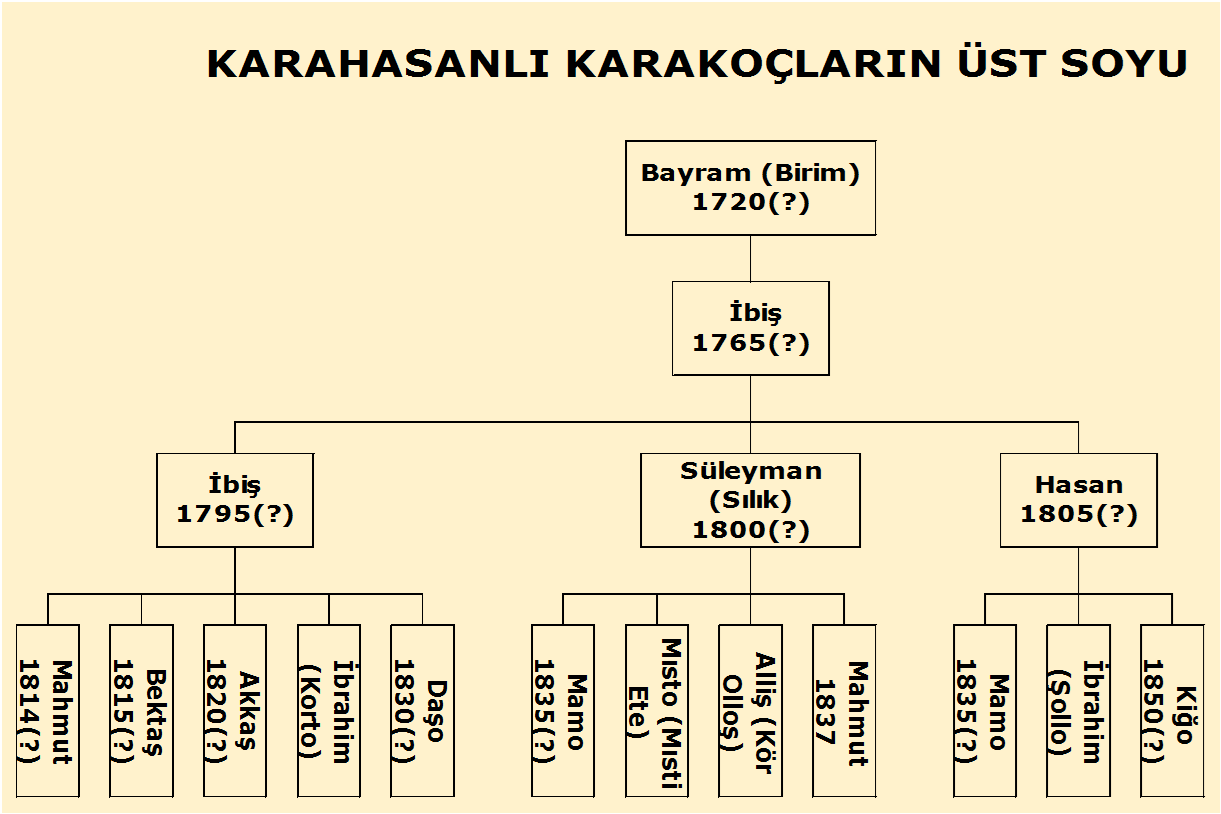 Resmi kayıtlar üzerinde yaptığım araştırmalar sonucunda, sözlü bilgilerin doğru olduğunu gördüm. Zira aşağıda vereceğim soy şemalarından da anlaşılacağı üzere, Celali Karakoçlar ile Karahasanlı Karakoçların üst soylarında bir çakışma bulunmamaktadır. Neticede Cela’daki Karakoçlar, aslen Karahasanlı değildir.